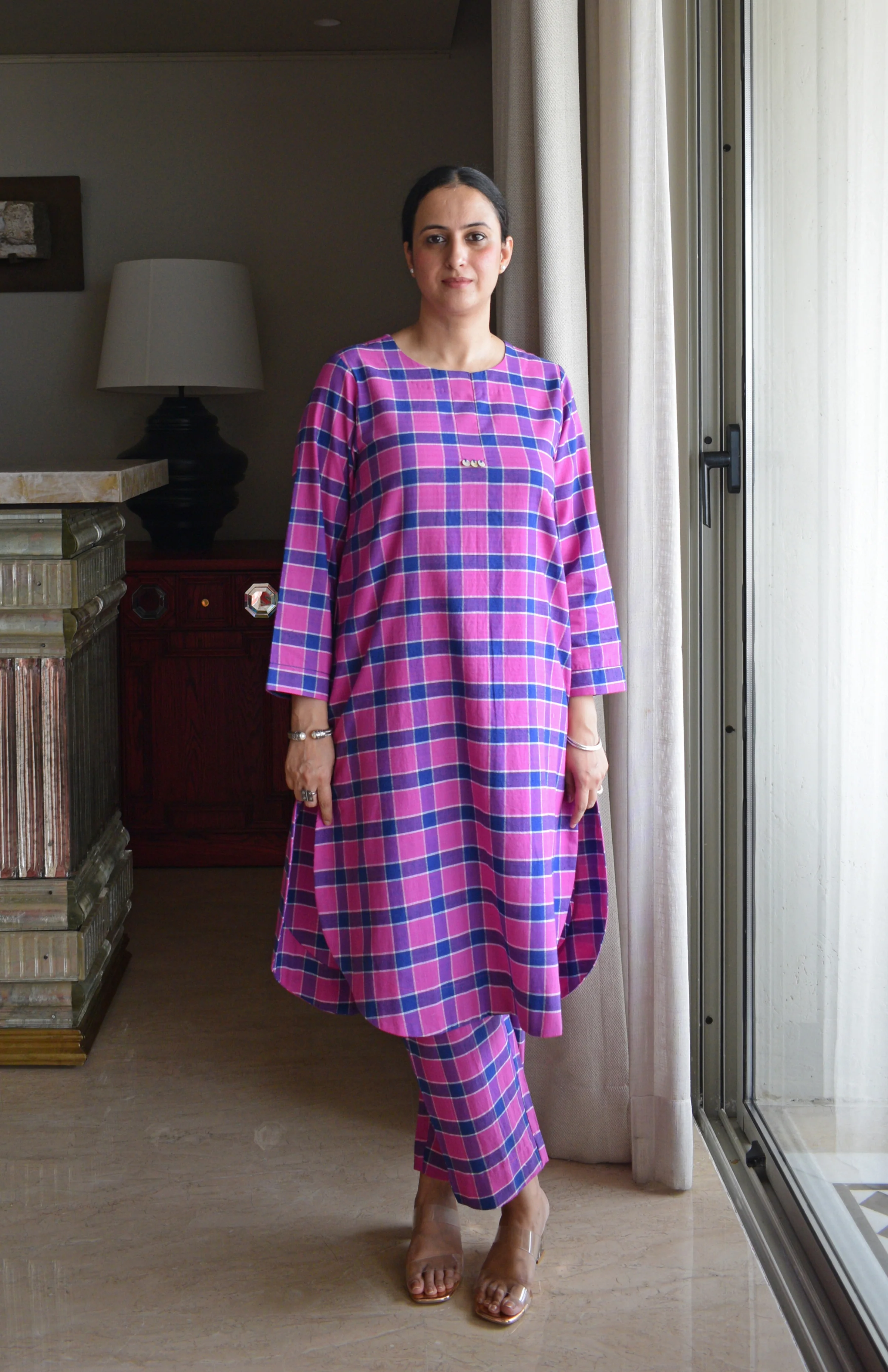 Orchid Pink Co-ord Set in Handwoven Cotton Checks